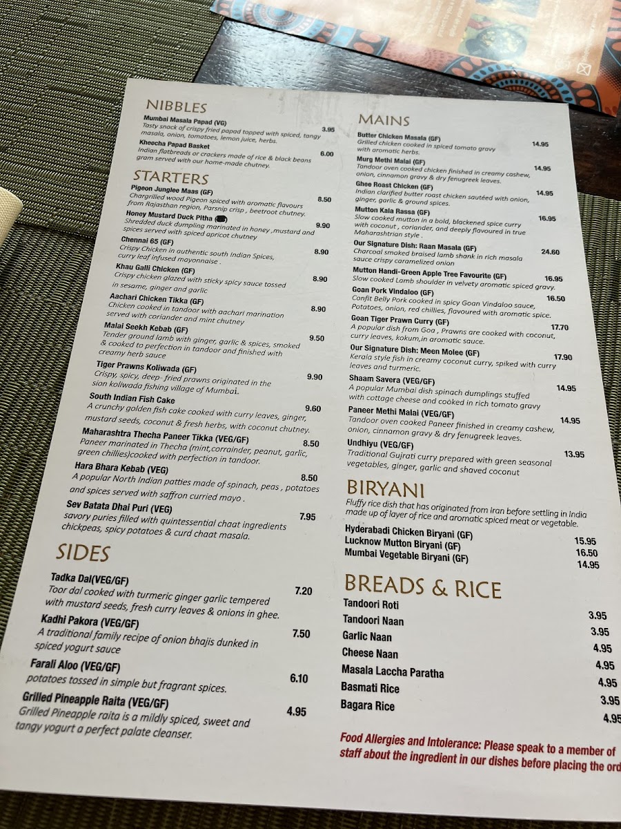 For mains, experience the rich aromas of dishes such as Delhi Wala Chicken or the flavorful Malabar King Prawn Curry. Vegetarian options like Dhaba Panner Masala and Lucknow Kofta Curry offer delicious alternatives. Don't miss the biryanis, notably the aromatic Hyderabadi Chicken Biryani, crafted with care and freshness. Each dish is prepared to order, ensuring a memorable dining experience marked by generous portions and exquisite flavors.